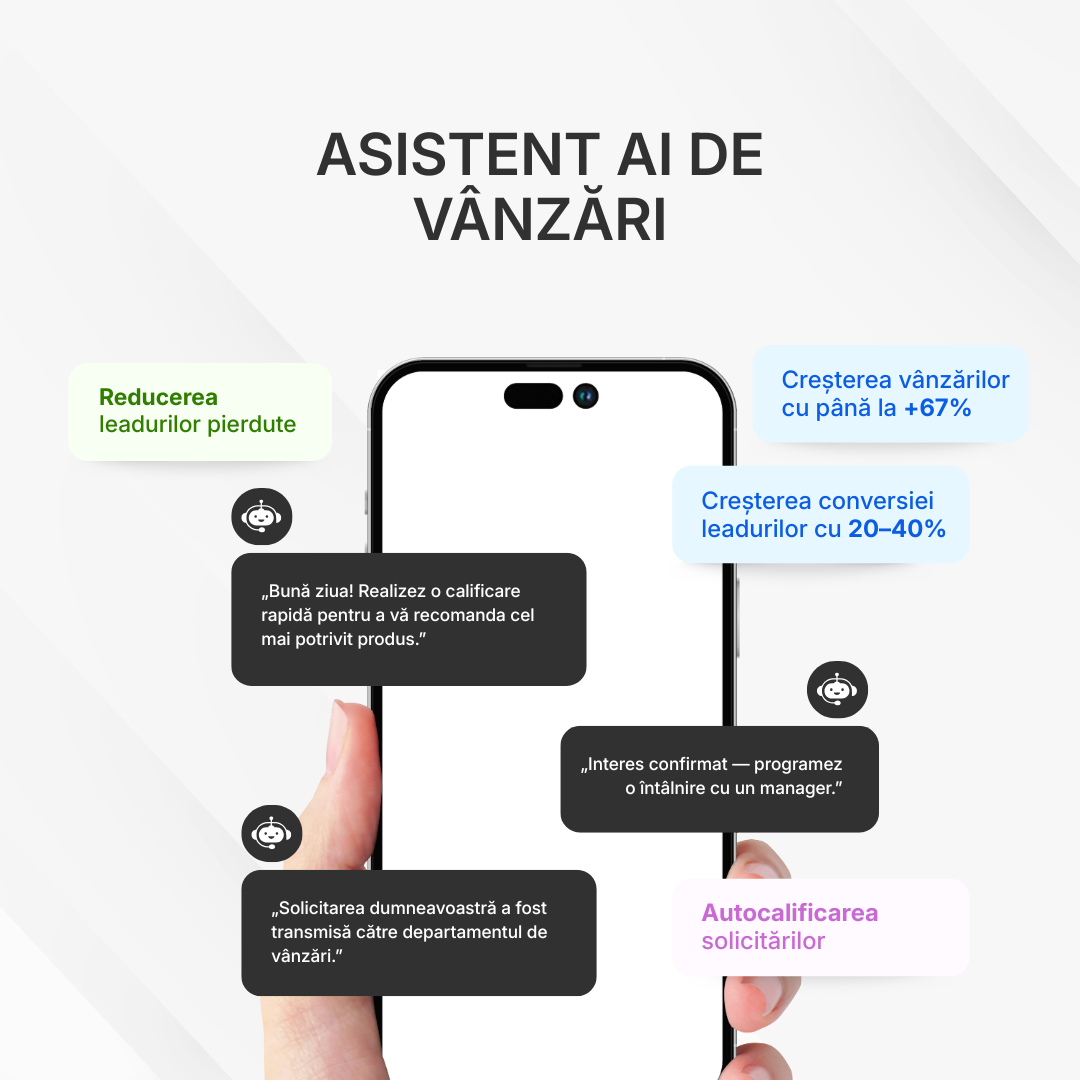 Recomandările personalizate ajută la structurarea comunicării, astfel încât aceasta să fie cât mai relevantă pentru fiecare client, iar notificările și mementourile automate minimizează sarcinile de rutină. Acest lucru permite managerilor să se concentreze pe activități strategic importante și vânzări reale, fără a pierde timp cu procesarea manuală a informațiilor.